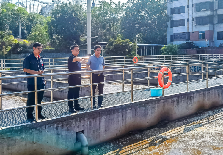 李楊董事長(zhǎng)深入東城分公司炳草崗水廠、污水分公司大渡口污水處理廠生產(chǎn)現(xiàn)場(chǎng),對(duì)現(xiàn)場(chǎng)防汛安全措施、邊坡?lián)鯄?、職工防汛防地?zāi)教育培訓(xùn)情況、日常巡查維護(hù)記錄、環(huán)境安全管理、污水(泥)處置進(jìn)行詳細(xì)了解。重點(diǎn)檢查了防汛物資供應(yīng)保障、汛期值班值守、高峰供水調(diào)度和生態(tài)環(huán)保、出水口水質(zhì)達(dá)標(biāo)等工作。